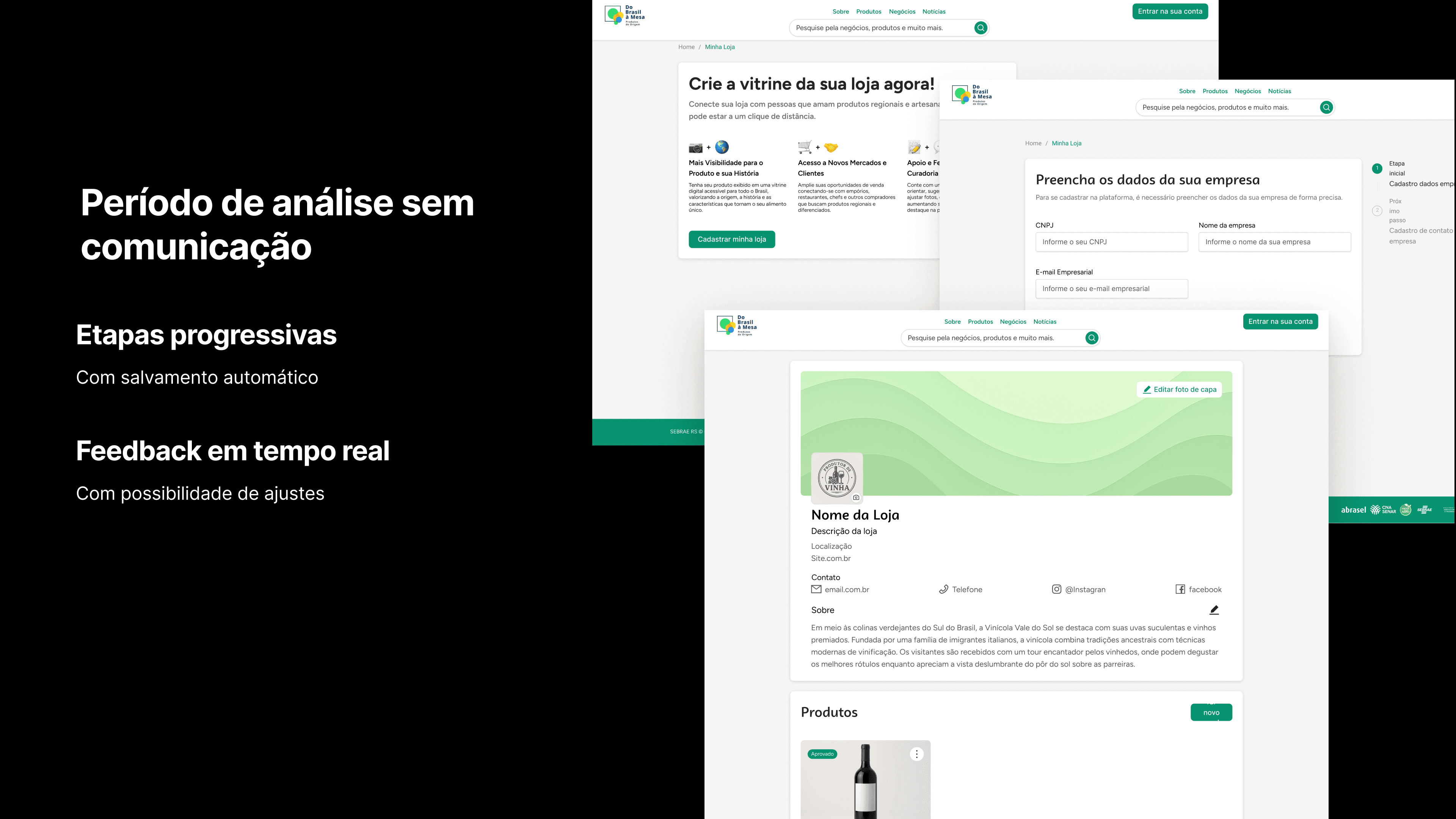 O objetivo do usuário era claro: ser reconhecido e divulgado. Ele queria criar sua vitrine, contar sua história, conquistar novos compradores e, principalmente, sentir orgulho de ver seu produto representando seu território.